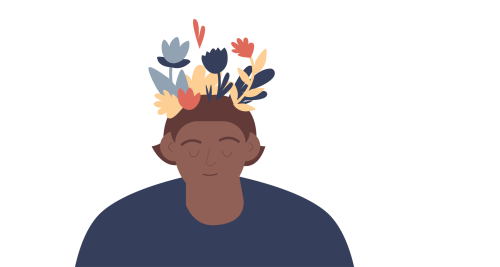 Flowers bloom from the head. Metaphor for safety and emotional growth.