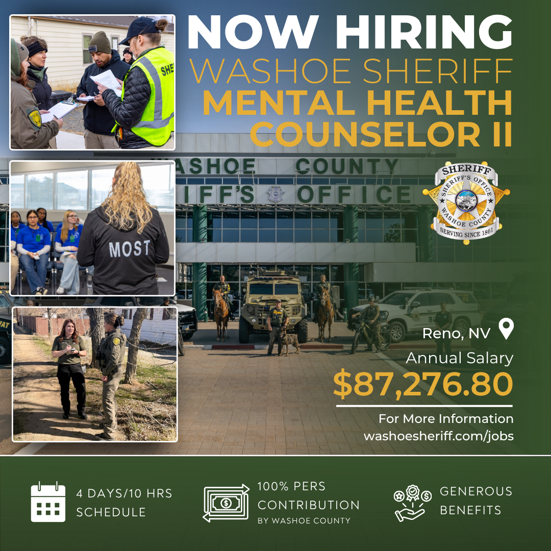 The Washoe County Sheriff’s Office is recruiting a full-time Mental Health Counselor to join our Mobile Outreach Safety Team (MOST). We would greatly appreciate your help in sharing this opportunity within your network, including CASAT’s students, alumni, and faculty.