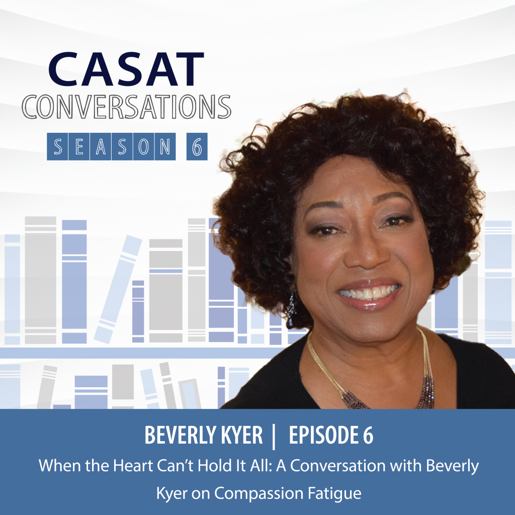 In this episode of CASAT Conversations, we sit down with Beverly Kyer—best-selling author, clinical social worker, and nationally recognized speaker on compassion fatigue. With more than three decades of experience in trauma recovery and emotional well-being, Beverly has dedicated her life to supporting those who serve others, particularly professionals working in high-stress environments.