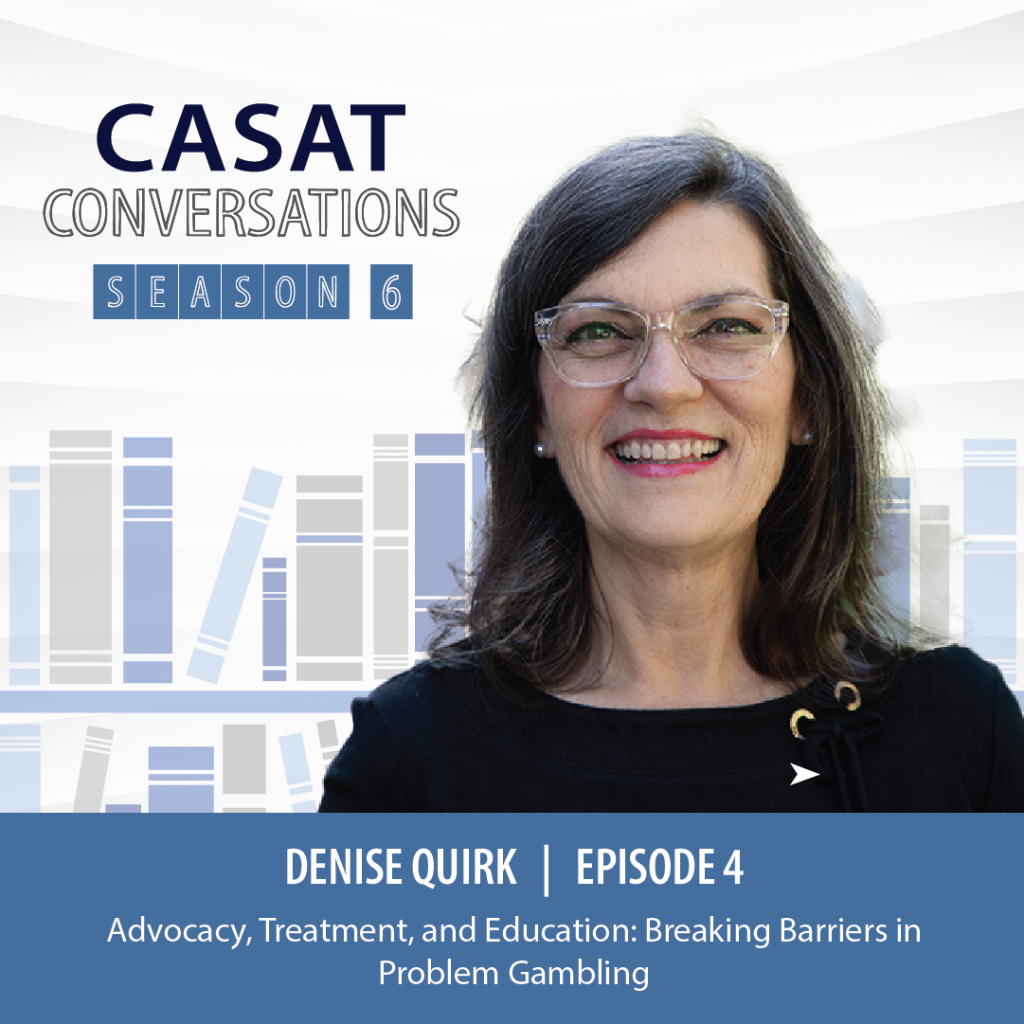 In this episode of CASAT Conversations, we welcome Denise Quirk, a seasoned addiction counselor, Marriage and Family Therapist, and nationally recognized advocate in the field of problem gambling. With over three decades of experience, Denise has played a pivotal role in shaping treatment, education, and policy for those affected by gambling disorder. From founding Red Hawk Counseling to serving as the CEO and Clinical Director of the Reno Problem Gambling Center, she has dedicated her career to ensuring individuals and families receive the support they need.